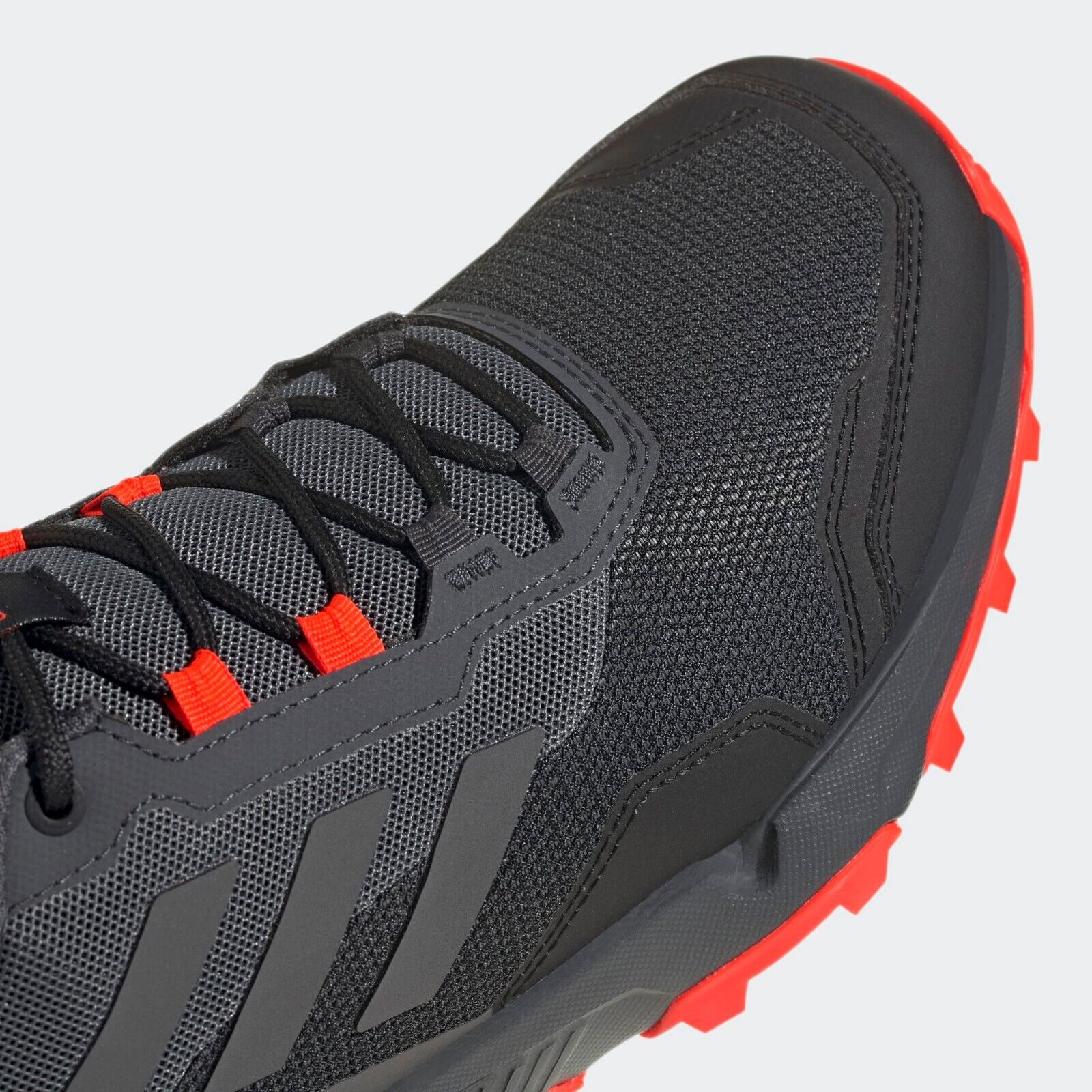 Colourway: Core Black / Grey Five / Solar Red (upper is varying shades of grey with black overlays and solar red detailing)