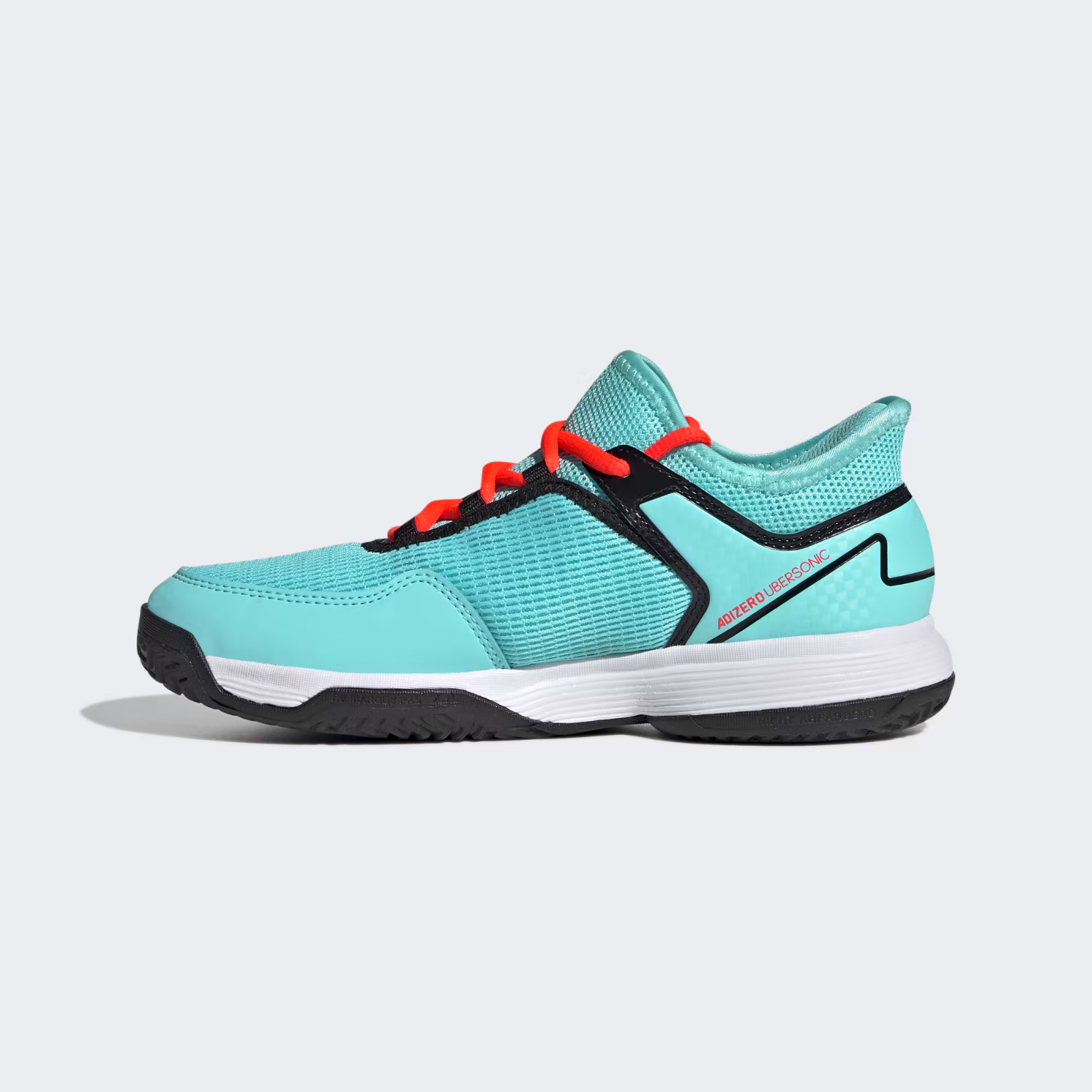SPEED-ENHANCING TENNIS SHOES MADE IN PART WITH RECYCLED CONTENT. Speed buys time. Time earns points. That's why these adidas Ubersonic 4 Kids Shoes tennis shoes were created to get you to the ball faster. Their comfortable mesh upper includes heel padding to lock you in for lightning sprints. EVA midsole cushioning makes for soft landings and a grippy Adiwear outsole keeps you quick on multiple surfaces.